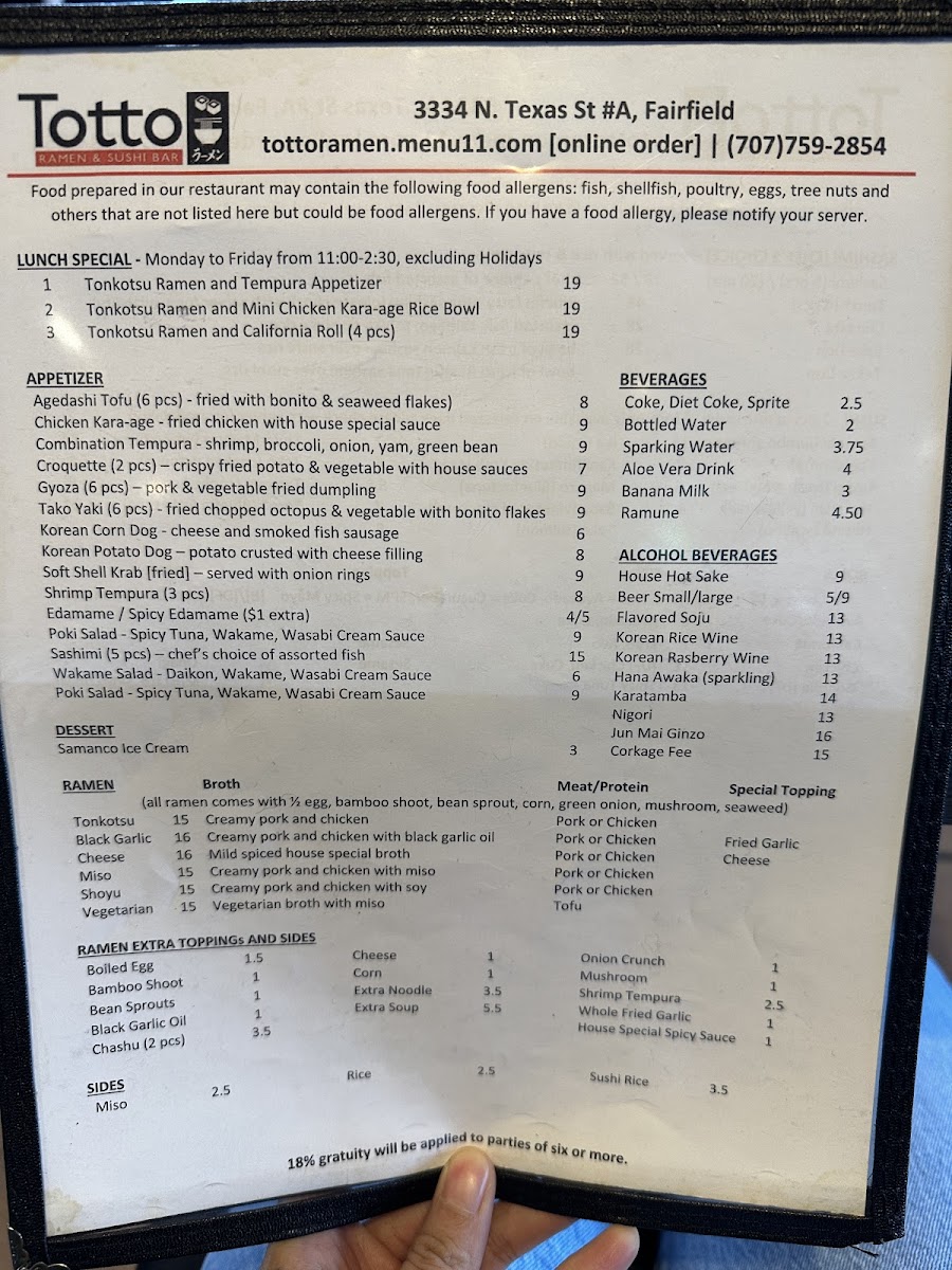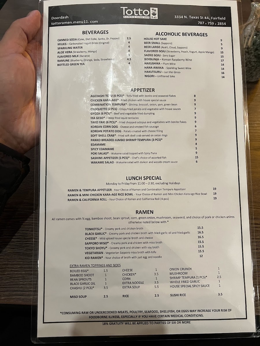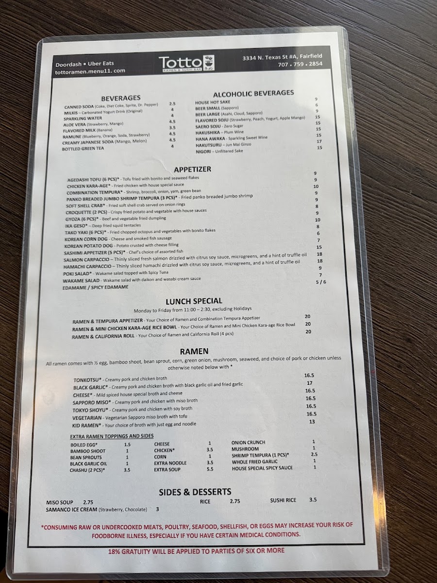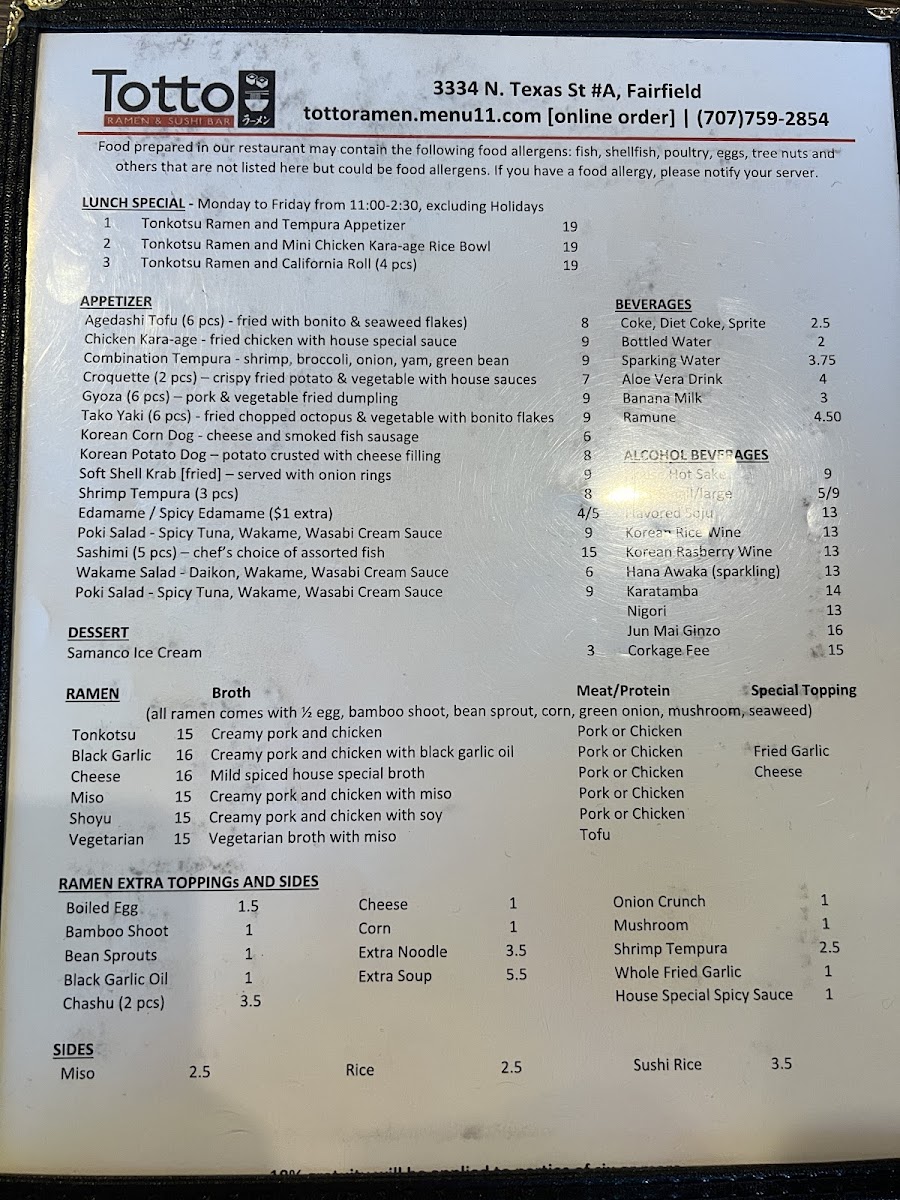 Your Choice of Ramen and California Roll (4 pcs) All ramen comes with 1/2 egg, bamboo shoot, bean sprout, corn, green onion, mushroom, seaweed, and choice of pork or chicken.